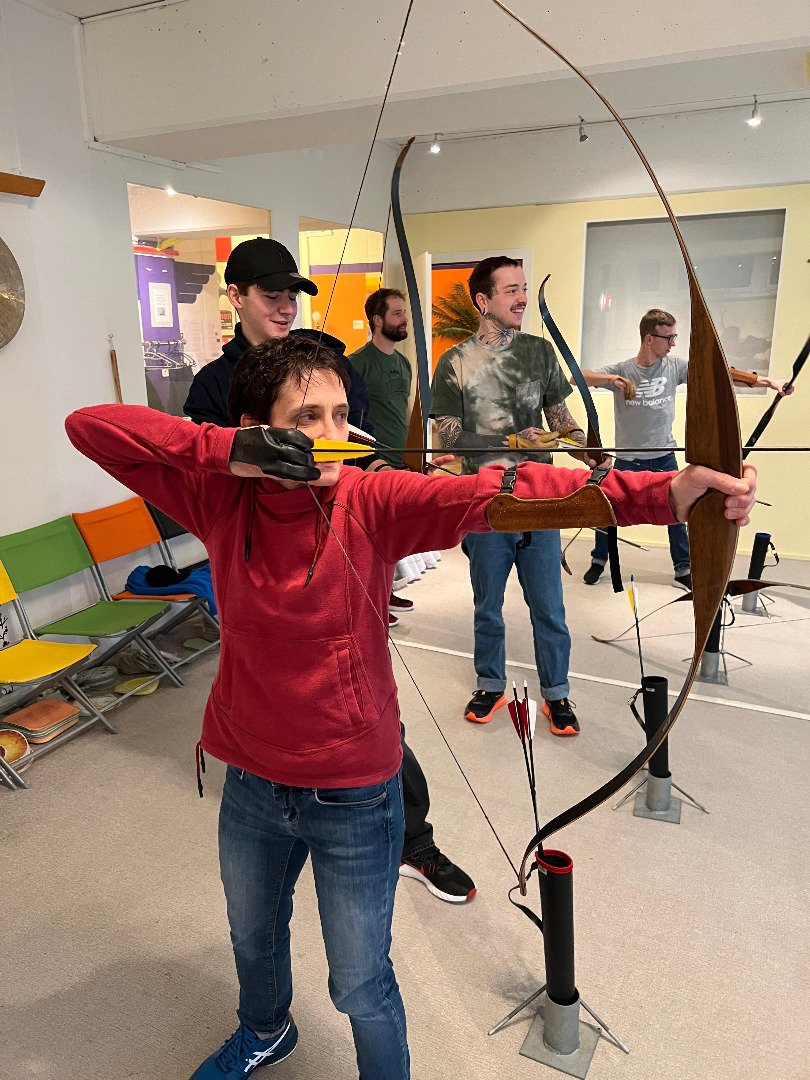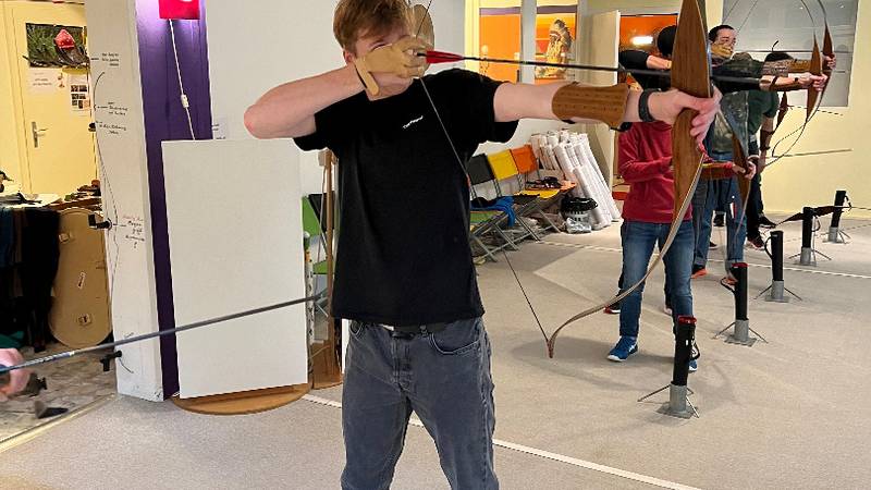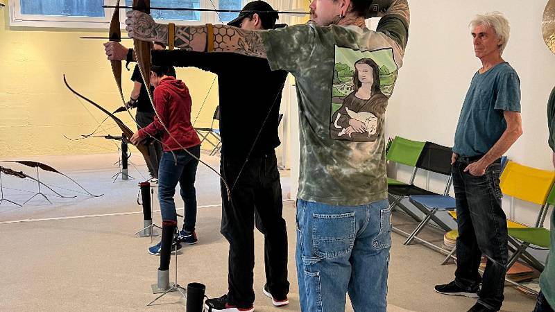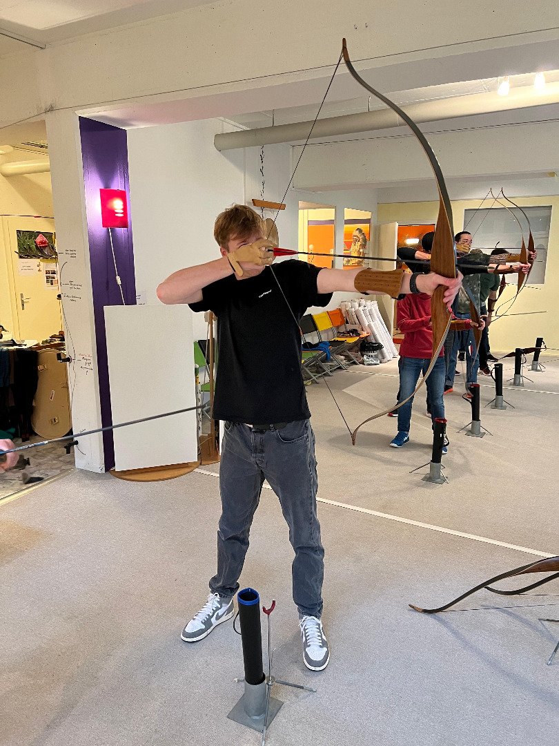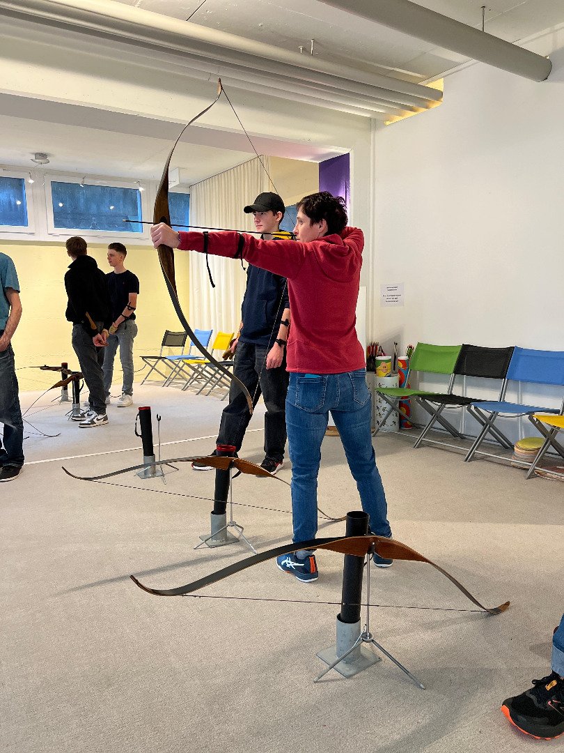 Früh am Morgen machten wir uns auf den Weg in die Stadt. In Zürich wollten wir den Tag verbringen. Den ganzen morgen lernten wir das traditionelle Bogenschiessen. Die Erfolge liessen nicht lange auf sich warten und so wurde bei verschiedenen Wettbewerben der Ehrgeiz von allen geweckt. Nach einem kurzen Stopp in einem mexikanischen Restaurant in der Stadt ging unser Programm auch schon weiter. Wir bekamen einen Workshop in «Action Painting»