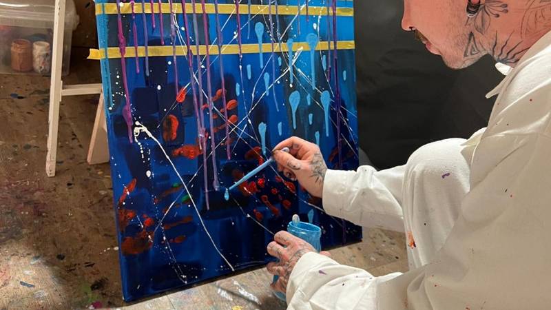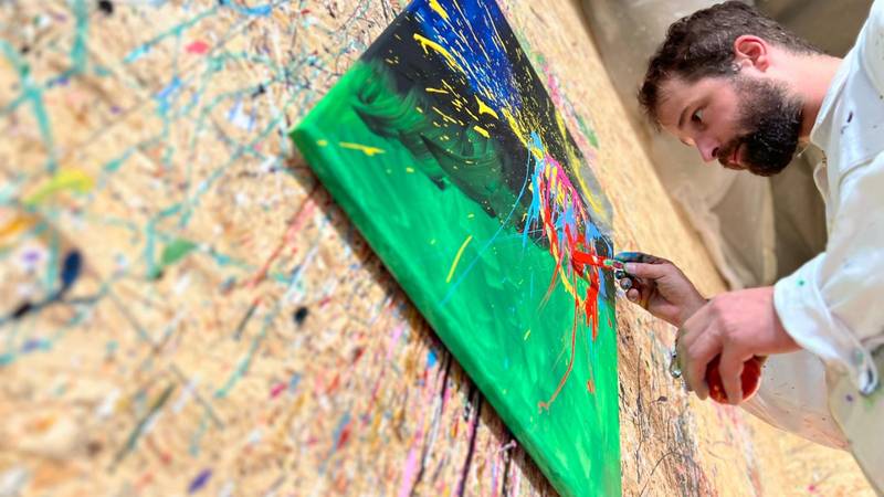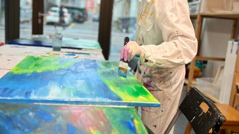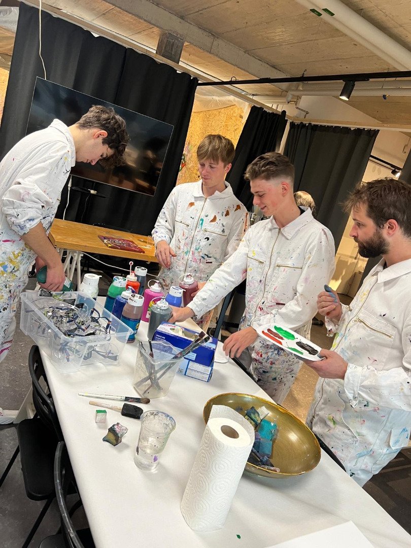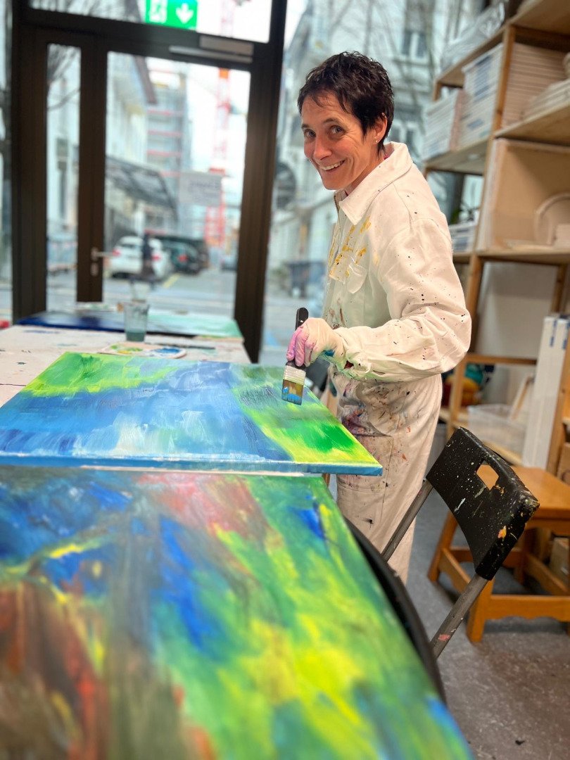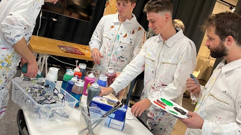 Mit verschiedenen Techniken malten wir eine besondere Erinnerung an diesen Tag für die Velothek. Ein Riesenspass, bei dem es so richtig farbig werden durfte.