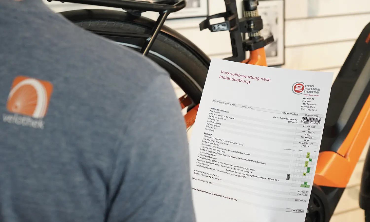 Einer unserer Mitarbeiter wird gemeinsam mit dir dein Velo begutachten.