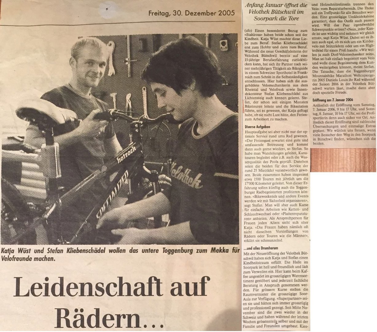 Vor 19 Jahren hatten wir eine Vision: Bütschwil sollte zum Mekka für Velobegeisterte werden. Mit viel Herzblut, harter Arbeit und der unermüdlichen Unterstützung unserer treuen Kunden und Partner ist es uns gelungen, diesen Traum Wirklichkeit werden zu lassen. Heute ist die Velothek nicht nur ein Fachgeschäft für Velos – sie ist ein Treffpunkt für Menschen, die die Liebe zum Velofahren teilen.