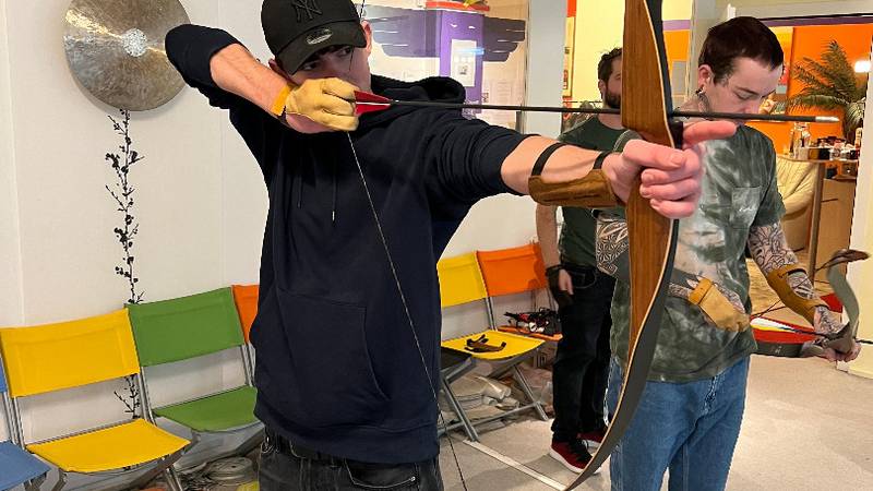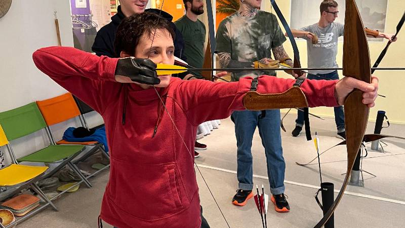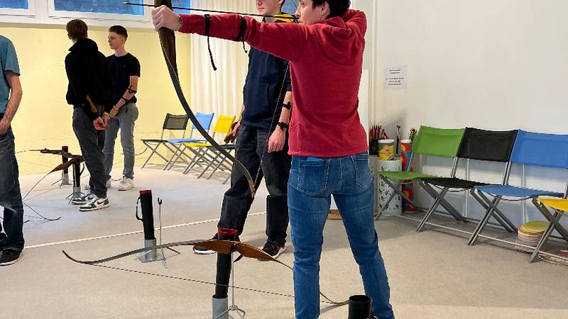 Früh am Morgen machten wir uns auf den Weg in die Stadt. In Zürich wollten wir den Tag verbringen. Den ganzen morgen lernten wir das traditionelle Bogenschiessen. Die Erfolge liessen nicht lange auf sich warten und so wurde bei verschiedenen Wettbewerben der Ehrgeiz von allen geweckt. Nach einem kurzen Stopp in einem mexikanischen Restaurant in der Stadt ging unser Programm auch schon weiter. Wir bekamen einen Workshop in «Action Painting»