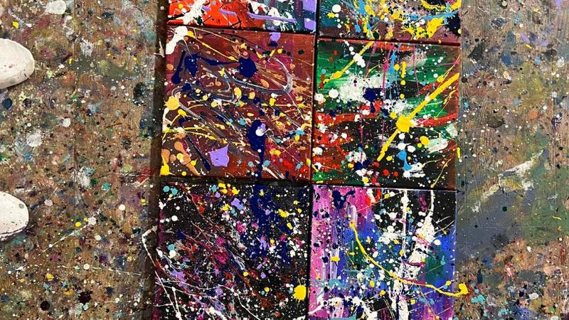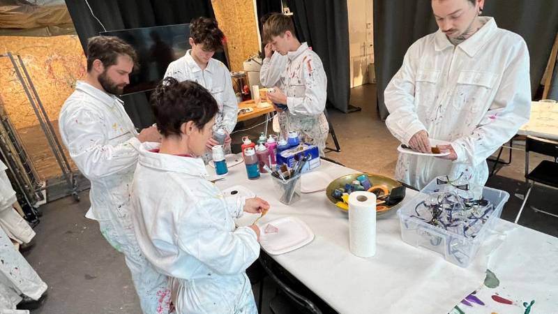 Mit verschiedenen Techniken malten wir eine besondere Erinnerung an diesen Tag für die Velothek. Ein Riesenspass, bei dem es so richtig farbig werden durfte.